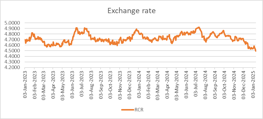 Exchange rates drive the returns exporters receive on the global market upwards and increases the price we pay for imported inputs. This is because if our dollar is weak, from a currency value, for example the American consumers they get $100 AU value for their $60 spend on Australian goods, as the exchange rate increase, they have to spend more US$. For exporters, the decline in exchange rates in all our major trading partners since late October 2024 for the US currency and late June 2024 for Japan and China has improved our export value.